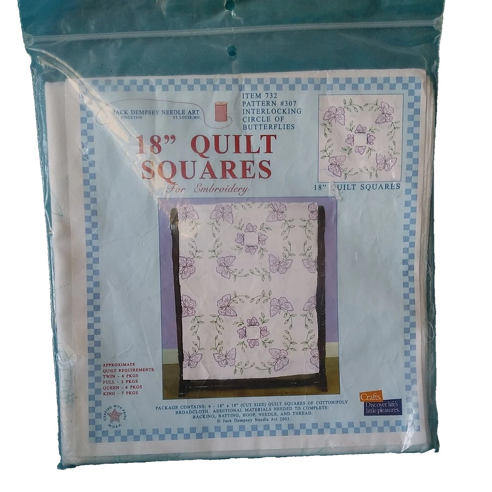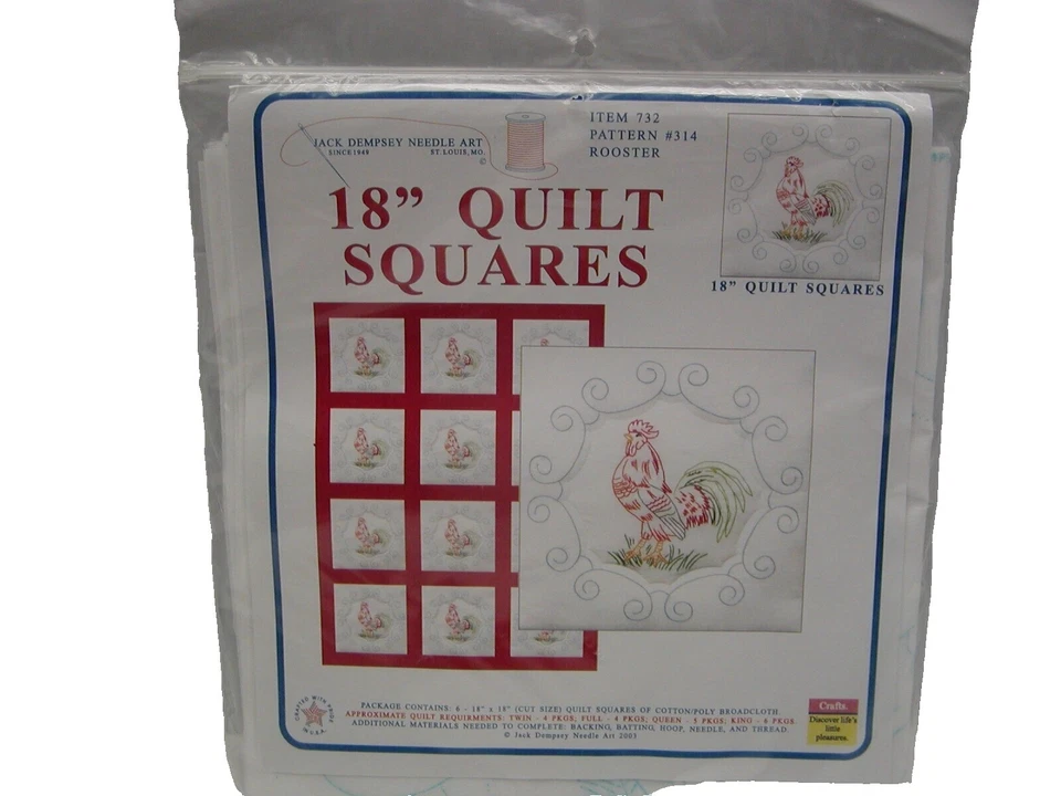 2 paquetes. BLOQUES DE EDREDÓN estampados de 18" para bordar a mano CORAZONES #40 NUEVO Jack Dempsey