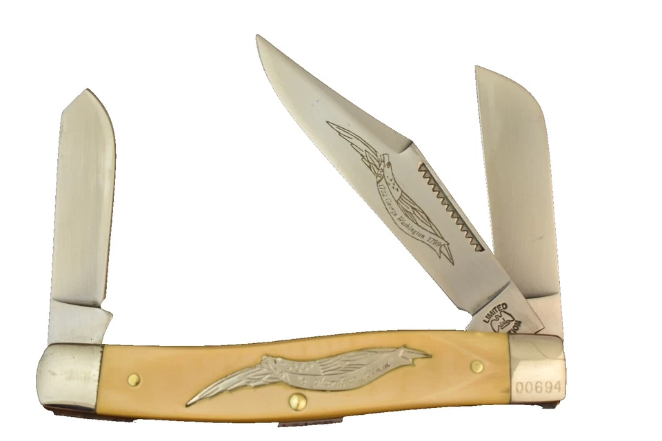 Cuchillo de ganadero mediano Schrade Imperial cuchillas de acero inoxidable mango de celuloide ámbar